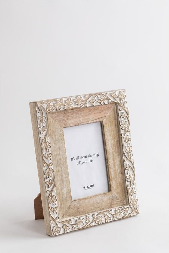 Description : Photo Frame , Product Dimensions : H15xL10 cm / H6XL4 Inches , Item No. : 247-332 , Color : Natural + white , Material : Mango wood.